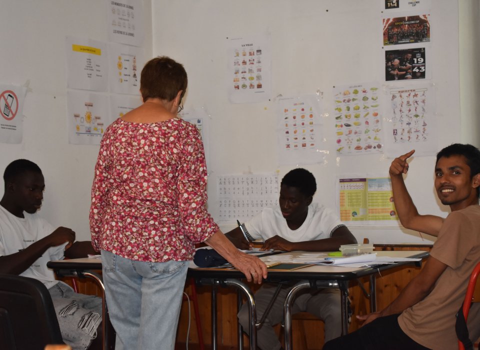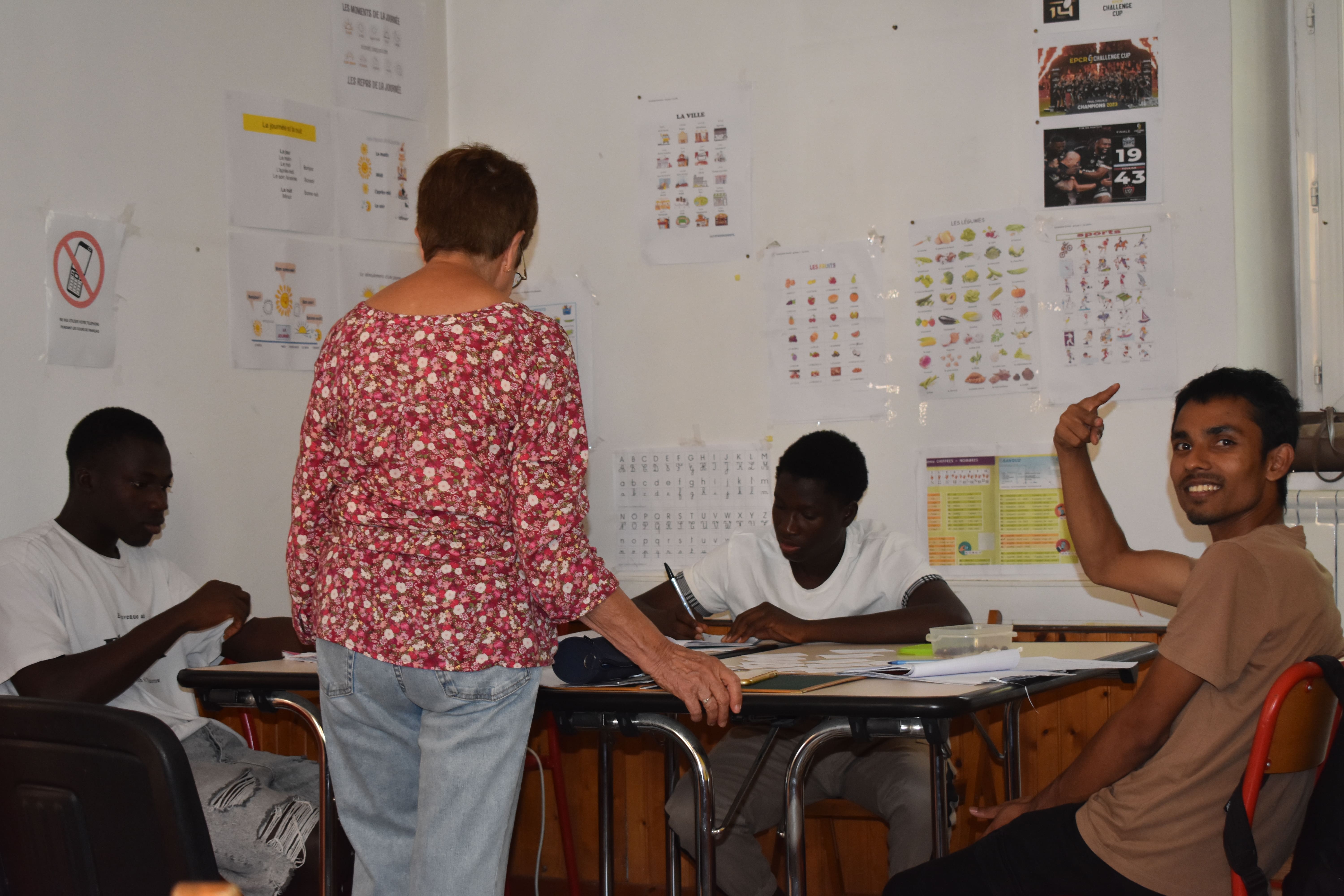 Entre l'église Saint-Vincent de Paul et les bâtiments flambant neufs qui poussent un peu partout dans le quartier Montéty, se trouve un endroit à part. Face aux voies ferrées, le vieux bâtiment de la paroisse où les ouvriers de l'arsenal venaient suivre des cours de soutien scolaire et de catéchisme reçoit aujourd'hui de nouveaux pauvres : les mineurs non accompagnés, les MNA comme l'administration les appelle, des enfants qui n'ont pas de famille en France. Tous les jours, de petits groupes de cinq jeunes se retrouvent avec un adulte bénévole qui leur apprend un français de base : se présenter, lire un plan, faire un achat... Et même au cœur de l'été, dans l'air étouffant tout juste rafraîchi par le souffle du ventilateur, le rythme se poursuit.